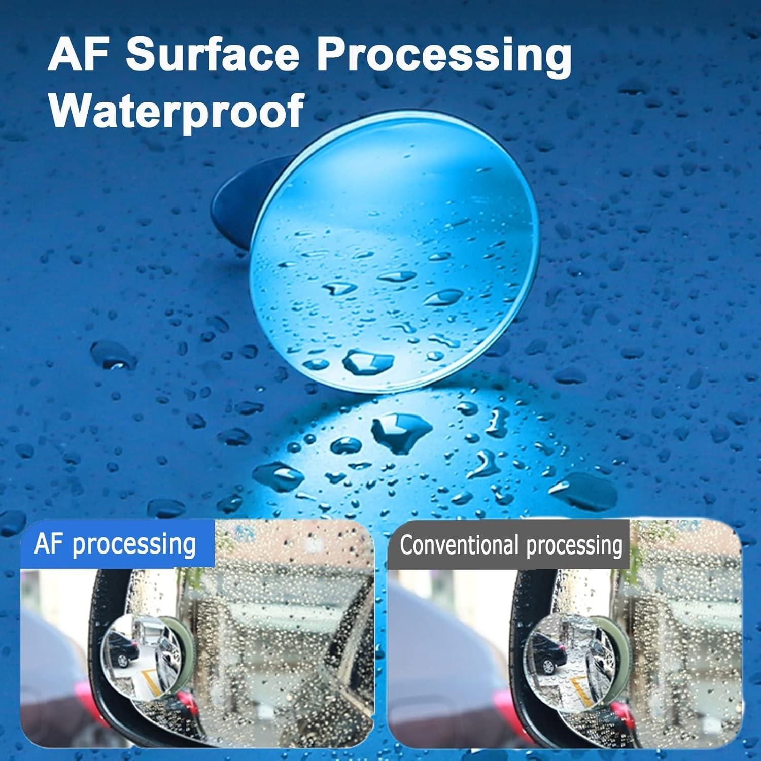 The blind spot mirror adopts a rotating frame to adjust the octopus bionic sucker design, which is very convenient to install and disassemble, will not damage the rearview mirror of the car, and can be reused. The AF mirror is waterproof and keeps the mirror clear.
